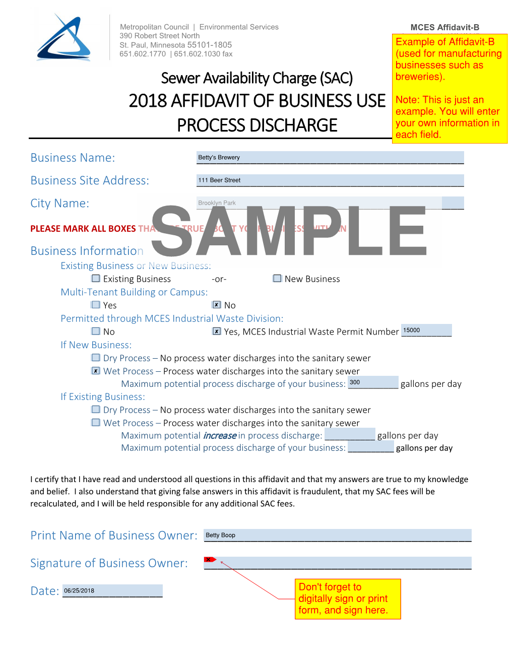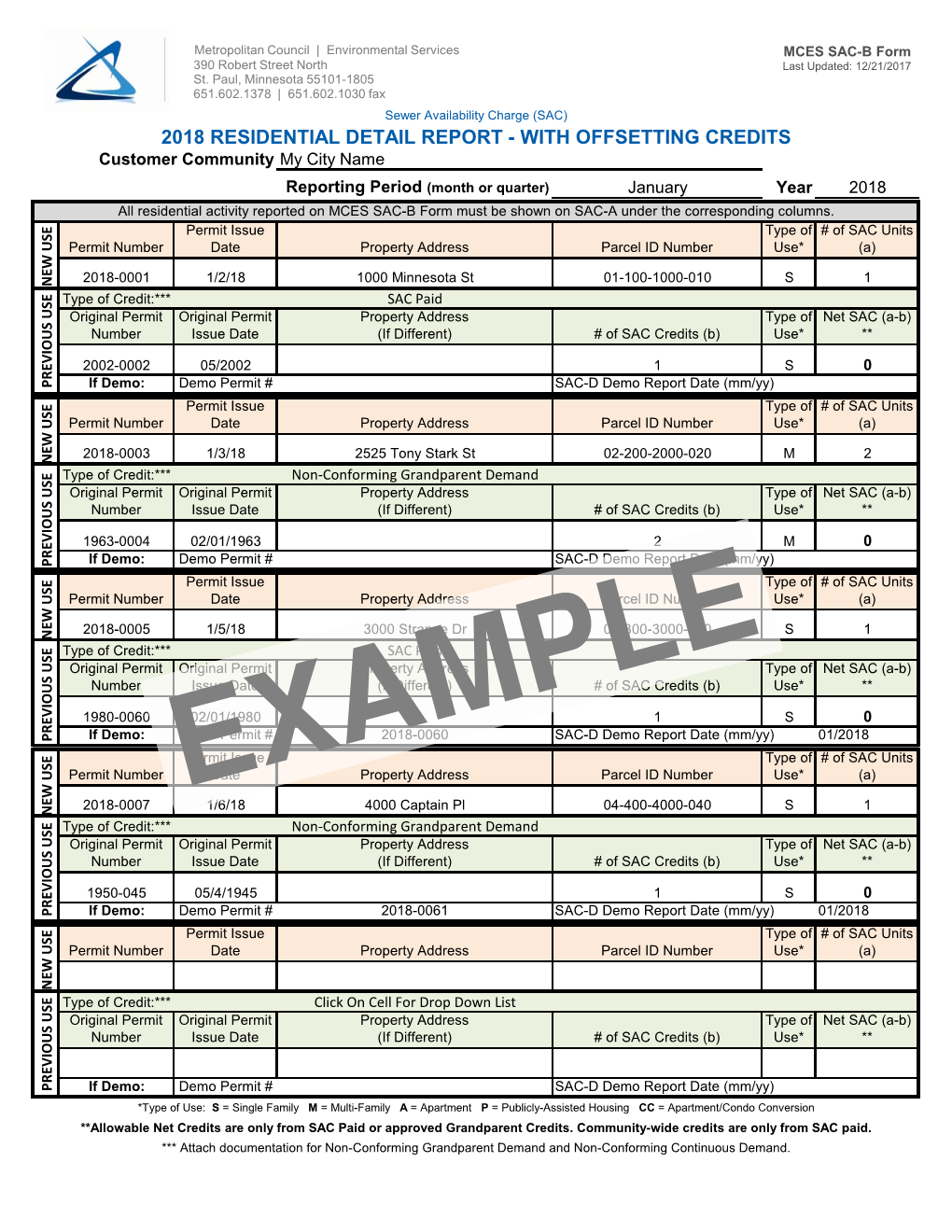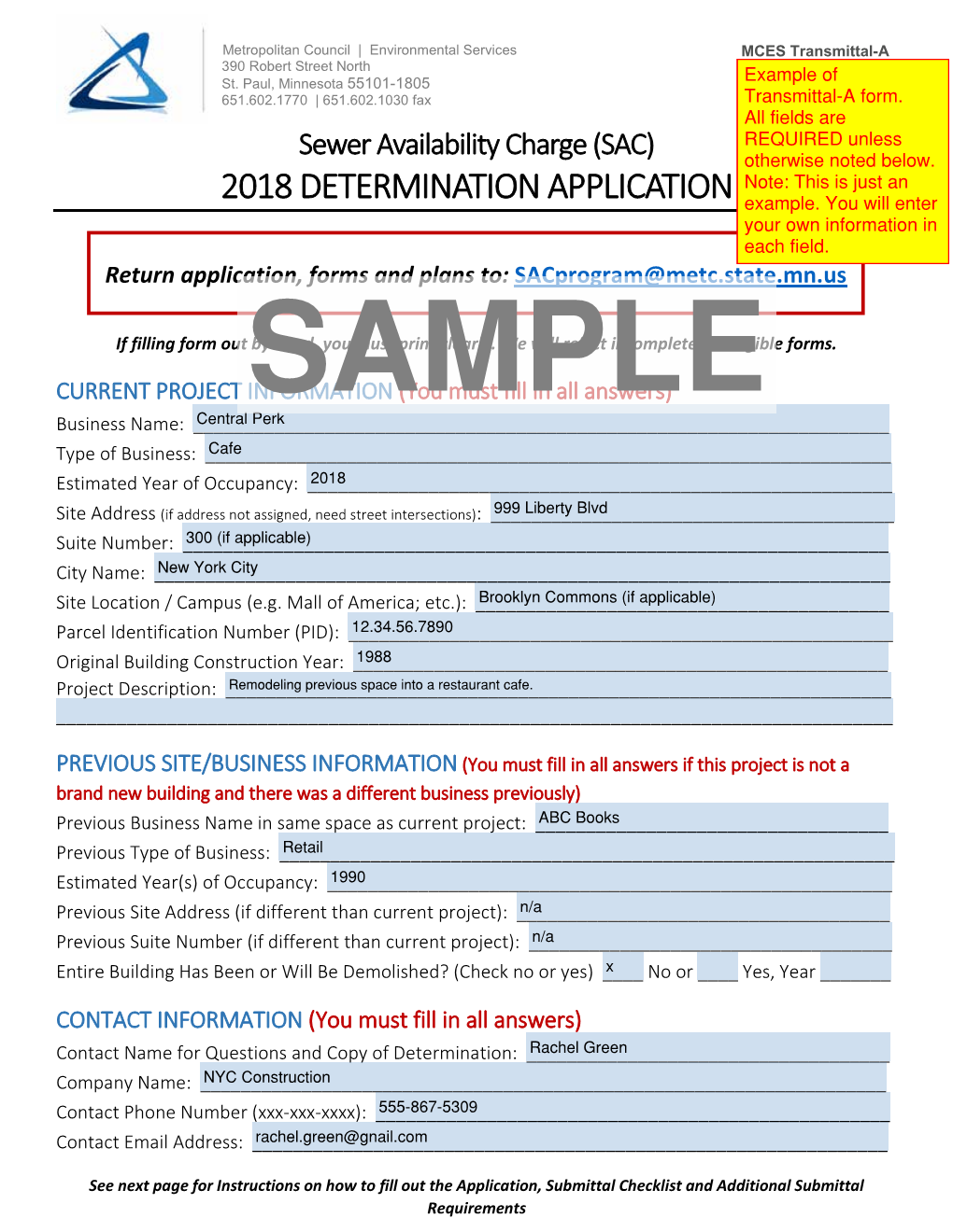 - Nonresidential demolitions must be accompanied by the SAC-C form or a copy of the MCES SAC Determination Letter