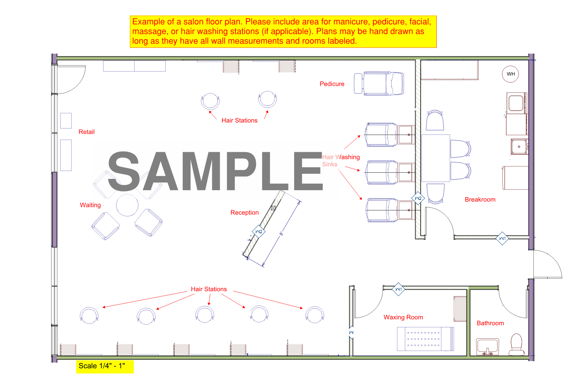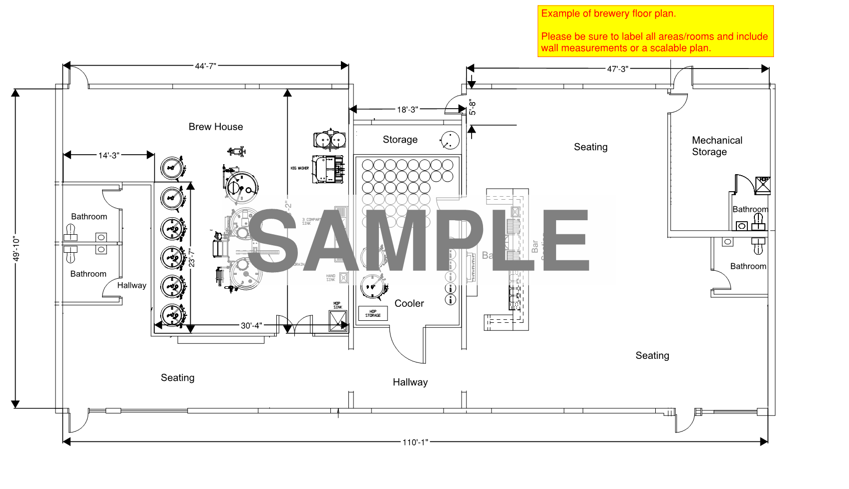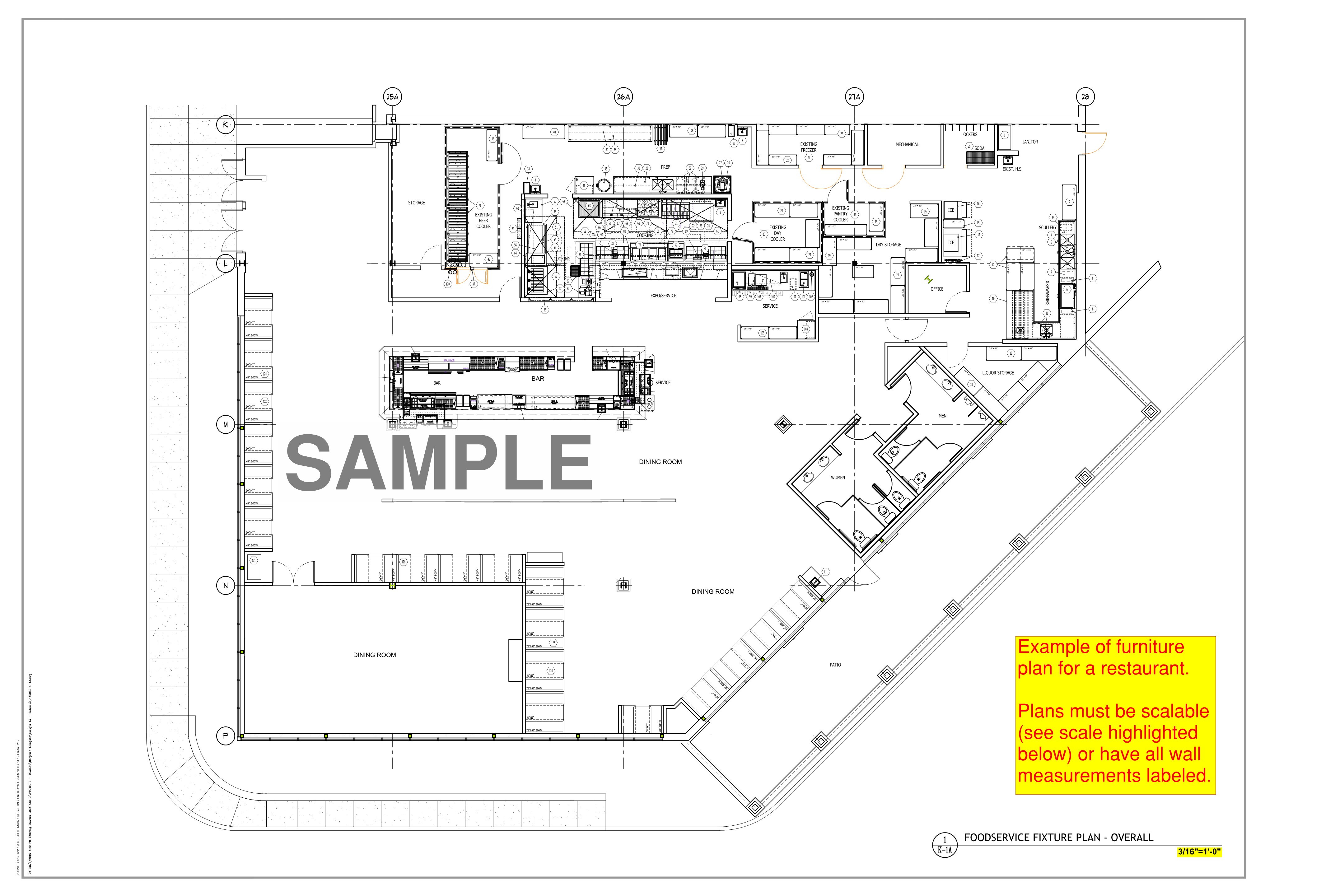 All fields are REQUIRED unless otherwise noted. Please note this is just an example. You will enter your own information in each field. If you have outdoor seating in your restaurant, you will need to include that on your floor plan as well. Don't forget to digitally sign or print form and sign.